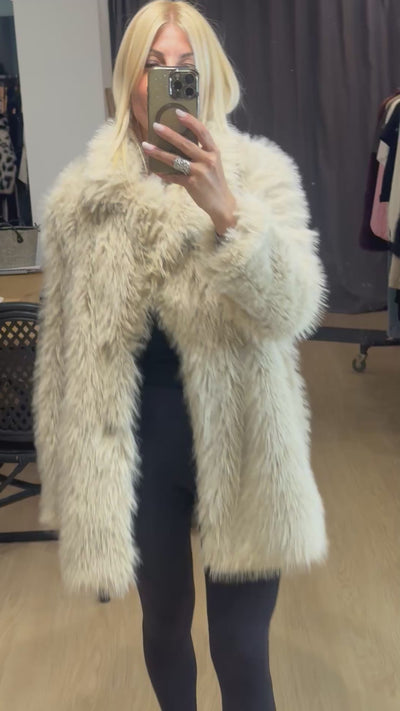 Drape yourself in decadence with this luxurious fur coat that's equal parts cozy and show-stopping. Designed for those who refuse to blend into the background, this piece brings instant sophistication and a playful dose of glamour to your wardrobe. Layer it over anything and watch the magic happen—suddenly, even your casual look feels like a red-carpet moment. Soft, sumptuous, and unapologetically fabulous, this coat is your ticket to feeling like the main character wherever you go.